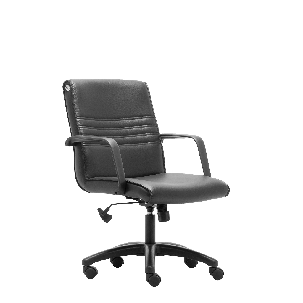 โครงสร้างพนักพิงและที่นั่งผลิตจากเหล็ก บุด้วยฟองน้ำหุ้มหนัง ที่วางแขนทำจากเหล็ก เก้าอี้สามารถปรับความสูงขึ้น-ลงได้ เพื่อให้เหมาะกับสรีระผู้ใช้งาน ขา 5 แฉก ทำจากพลาสติก PP ฉีดขึ้นรูป
