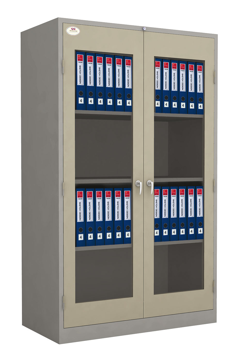 โครงตู้ทำจากเหล็กแผ่นชนิด SPCC ผ่านการ NOTCHING และ PIERCING ด้วยเครื่อง CNC ที่แม่นยำและทันสมัย พับขึ้นรูปเสริมความแข็งแรงด้วย REINFORCE ที่ผ่านการขึ้นรูปแบบ ROLL FORM ประกอบและเชื่อมยึด เพื่อความแข็งแรง ภายในมีแผ่นชั้น 3 แผ่น เสริมความแข็งแรงด้วย REINFORCE ที่ผ่านการขึ้นรูปแบบ ROLL FORM โดยสามารถปรับระดับได้ตามความต้องการบนตะขอรับชั้นเหล็กที่มีความหนาถึง 1.2 มม. สามารถรับน้ำหนักได้มากถึง 80 กิโลกรัม ต่อ ชั้น บานประตูเจาะช่องขนาด กว้าง 238 x สูง 1554 มม. ปิดด้วยแผ่นอะคริลิคหนา 2 มม. ให้สามารถมองเห็นภายในตู้ มือจับแบบเขาควายชุบโครเมี่ยม 2 ชุด โดยมีกุญแจล็อคได้ 1 ชุดที่บานประตูขวาเป็นกุญแจเหวี่ยงกลอนล็อคบน ล่าง และบานประตูพร้อมๆกัน 3 จุด มีบานพับประตูข้างละ 3 จุด